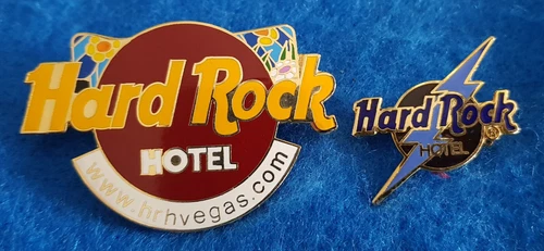 LAS VEGAS HOTEL WESITE APRIL FOOLS LOGO + LIGHTNING BOLT Hard Rock Cafe 2 PINS