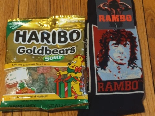 Haribo Holiday Edition Sour Goldbears Gummies / Rambo Novelty Socks