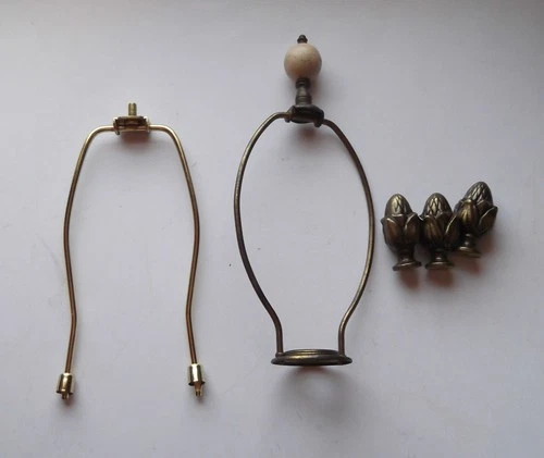 Vintage Brass Finish Detachable Lamp Harp Holder 9 " Tall Set & 3 Acorn Finials
