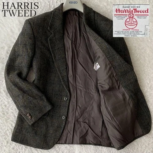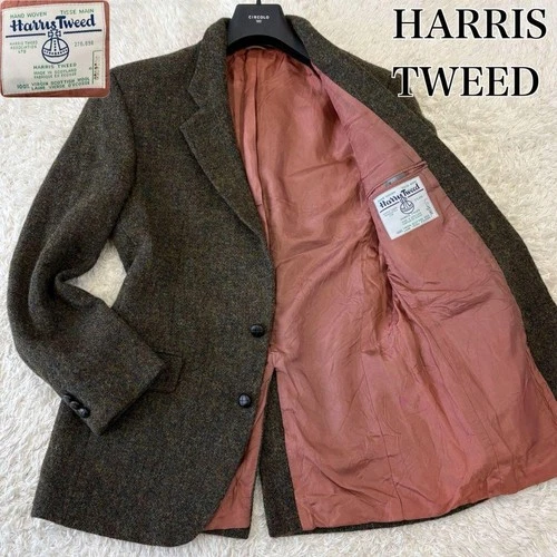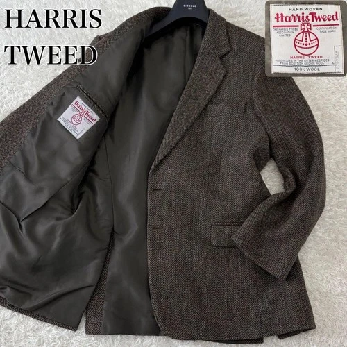 Harris Tweed Wool Herringbone Tailored Jacket Brown Size 52R HT0426024