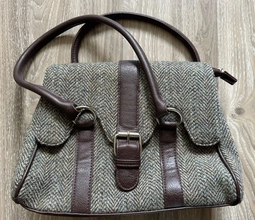 Glen Appin of Scotland Harris Tweed Wool Handbag Herringbone Tartan Leather