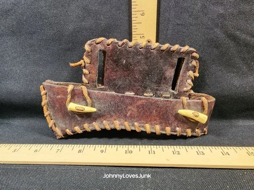 Vintage Leather Native Handmade Pow Wow Leather Tomahawk Belt Holster Bone Catch
