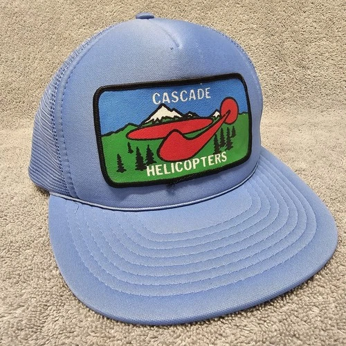 Vintage Helicopter Patch Hat Trucker Cap Mesh Back Snapback OSFM Blue Foam