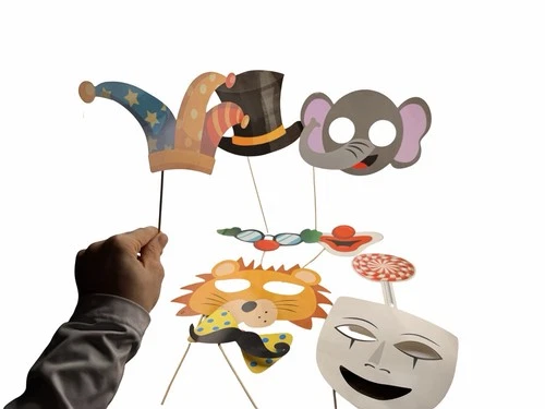 Vintage Photo Booth Props Lot Masks Hats Clown Lion Elephant Party Costume Set