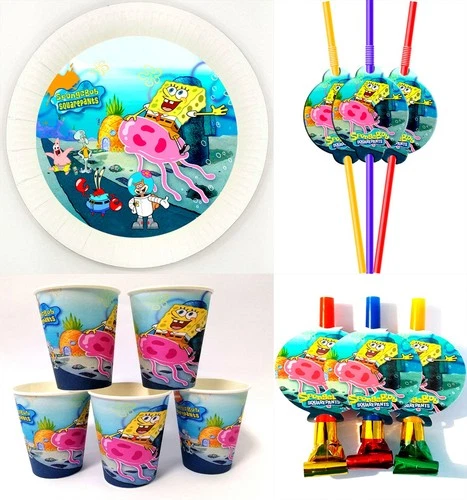 SpongeBob Birthday Party set Banner Plates Cups Hats Gift Bags Favor Box Toppers