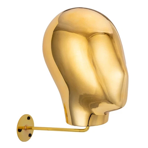 Shiny Golden Gold Wall Mounted Metal Mannequin Head for Wigs HATS MASKS DISPLAY