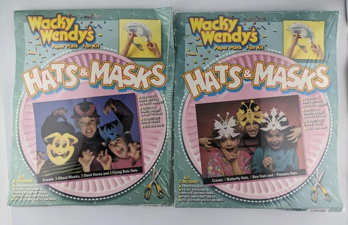 WACKY WENDY's Paper Plate Hats & Masks - Vintage 1991 - (2 pack) Unused / Sealed
