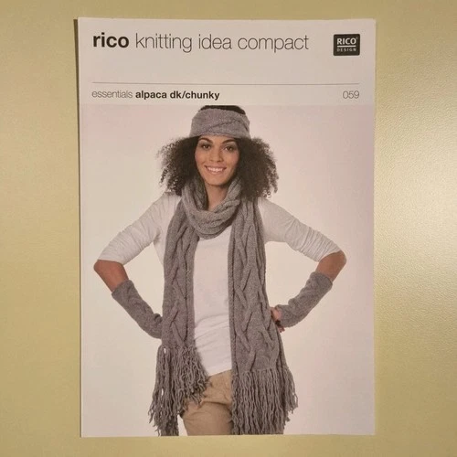 Rico 059 Alpaca DK Chunky Cable Shawl Headband Gauntlets Knitting Pattern New