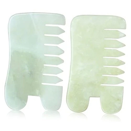 2 Pcs Jade Comb for Scalp Massage Gua sha Comb for Head Body spa Classic Style