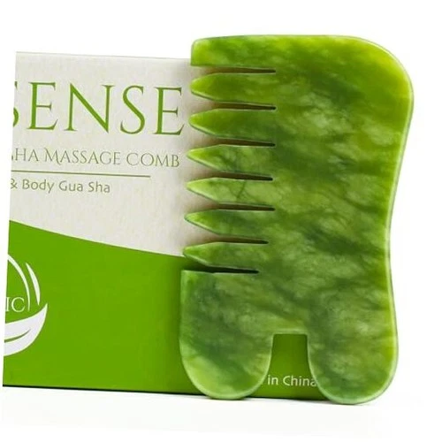 Gua Sha Comb Tool, Natural Green Jade Stone Scalp Massage Comb, Facial GuaSha