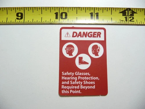 DANGER SAFETY GLASSES HEARING PROTECTION SHOES REQUIRED SMALL STICKER DECAL