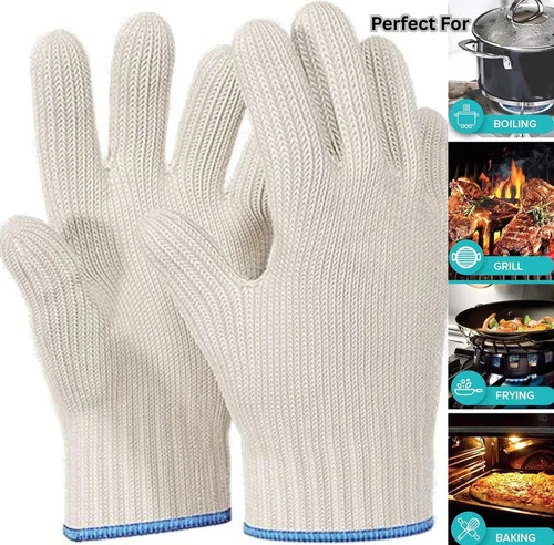 2x Oven Gloves Heat Resistant With Fingers BBQ Kitchen Non-Slip Cooking Mitts UK