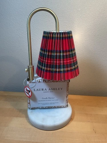 Laura Ashley Flameless Candle Warmer Marble Base Red Blue Green Plaid Lamp Shade