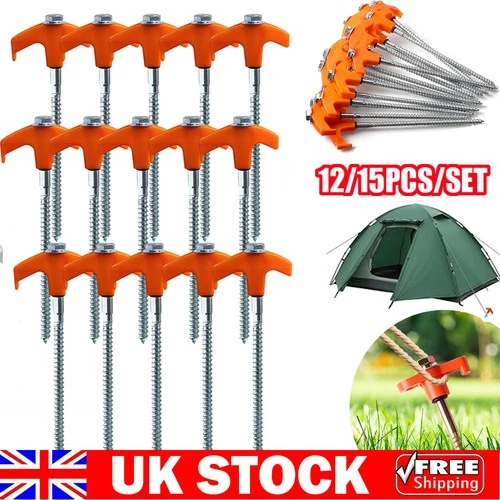 12/15x Screw In Heavy Duty Drill Top Tent Pegs Set Camping Ground Awning Pegs UK