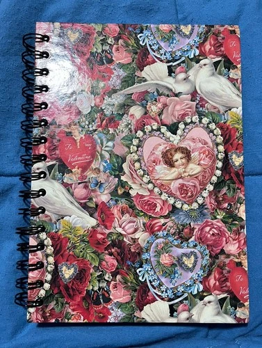 Vintage Style Floral Valentine Cherub Lined Spiral Notebook Journal