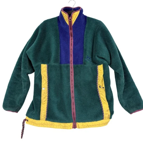 Vintage Helly Hansen Jacket Mens XL Green Colorblock Fleece Zip Ski Lined 90s