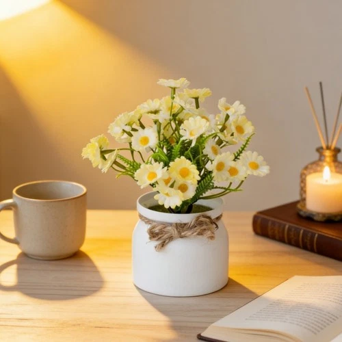 Stylish Plastic Bonsai Plant with Hemp Rope Base for Modern Desk Setup