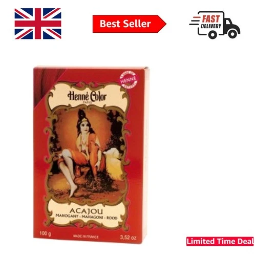 100g Henna Hair Color Powder in Acajou Mahogany - Semi-Permanent Shine & Volume