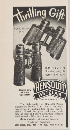 1956 Print Ad Hensoldt Prism Binoculars West Germany Carl Zeiss New York,NY