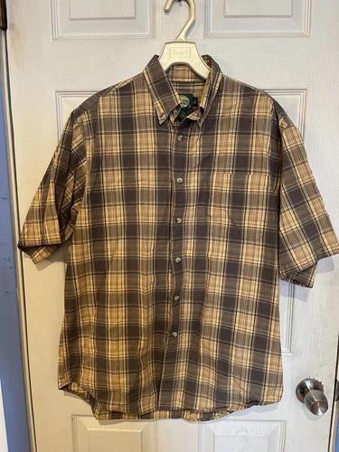 Cabela's Outdoor Gear Button Down Shirt Men's Size M Brown Plaid Camping Hiking