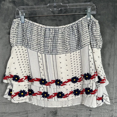 PIPER by Townsen Floral Embroidered Rayon Tiered Hi Low Skirt *Stretched Out*
