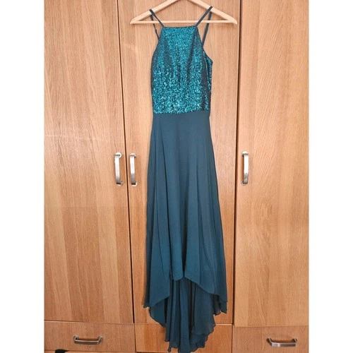 New Tags! Quiz Emerald Dark Green Sequin Chiffon Prom Dress UK 4 Tag £65