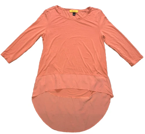 St John Hi-Low Blouse Coral Orange Salmon Tunic 3/4 Sleeve Silk Contrast L