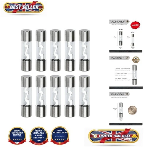 10-Pack Nickel Plated 50 Amp AGU Fuses - Reliable for High Current Applications