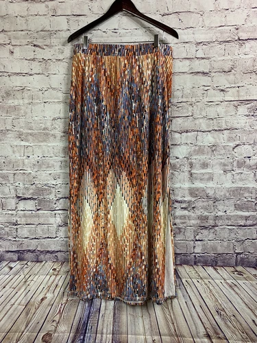 Lane Bryant Skirt Womens 14/16 Brown Print Elastic Waist Rayo Slits Boho Maxi