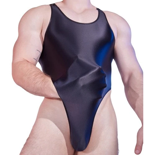 Men's High Cut Bandage Bodysuit Oil Glossy Shiny Yoga Jumpsuit Sleeveless
