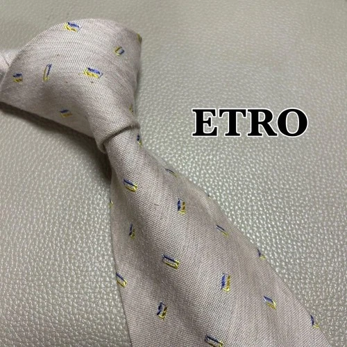 Etro Silk Tie Striped Dot Check Pattern Beige High-End Used