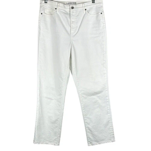 Land's End High Rise Straight Jeans Women's Size 14 Canvas White Denim