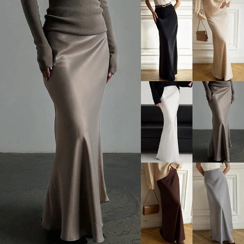 Womens Satin Silk Bodycon Fishtail Skirt Long Maxi Dress High Waist Summer Party