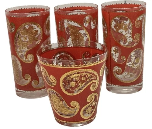 Vtg Paisley by Culver Set Of (3) 12 Oz Flat Tumblers Plus Bonus MCM