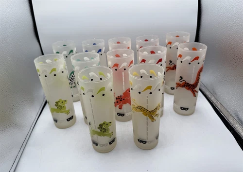 VINTAGE SET OF 8 + 4 EXTRA LIBBEY ANIMAL CAROUSEL FROSTED GLASSES 7" LOT OF 12