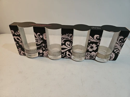 christian siriano rhinestone Silver Accent 4 highball glasses 6" height HOLIDAY