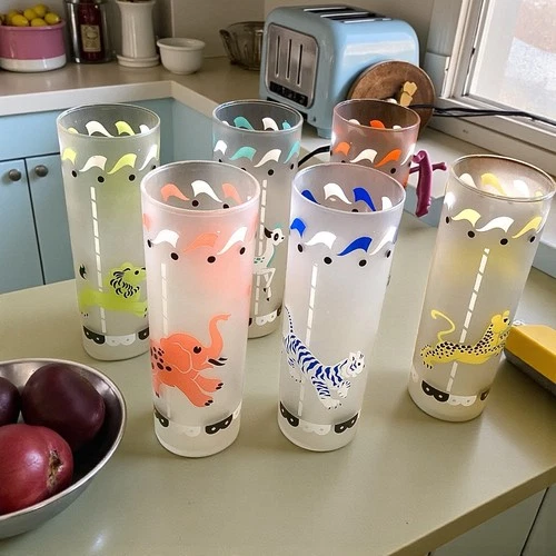 Libby Carousel Merry Go Round Frosted Drinking Glasses Set of 6 Circus Animals