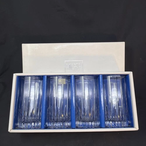 Set Of 4 MIKASA ARCTIC LIGHTS HIGHBALL GLASSES Cut Lead Crystal 5 1/4", EXC