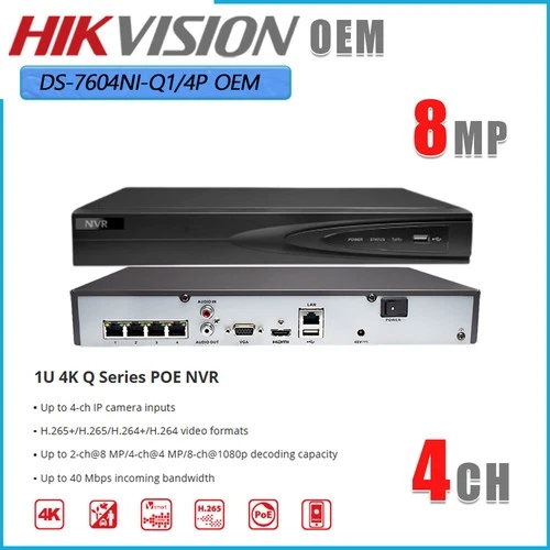 Hikvision 4K 4CH OEM DS-7604NI-Q1/4P POE NVR Network Video Recorder 1HDD Port UK