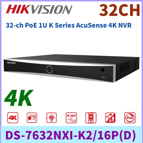 Hikvision DS-7632NXI-K2/16P(D) 4K 32CH PoE 1U AcuSense Network Video Recorder