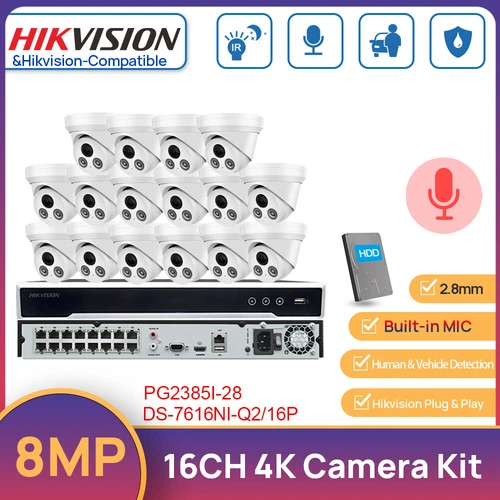 Hikvision 16CH CCTV System 4K NVR 8MP IR MIC POE Camera Night Vision Plug Play