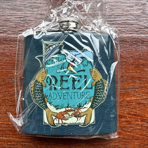 Hip Flask 6oz Stainless Steel Whisky Alcohol Drink Pocket - Fishing Theme