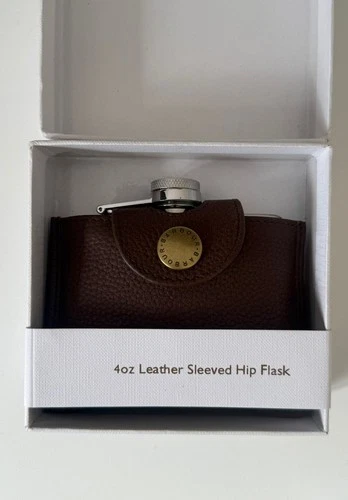Barbour 4oz Hinged Hip Flask with Brown Leather Sleeve Boxed