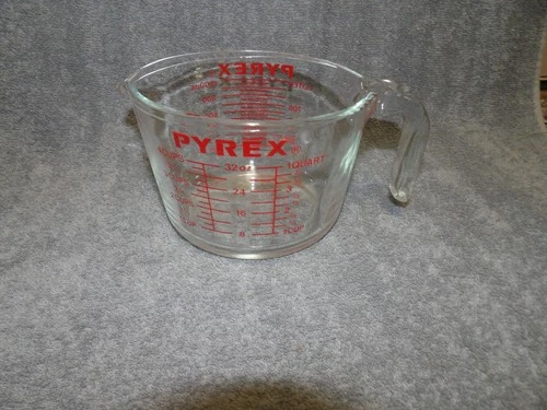 Vintage PYREX 532 Glass Measuring 4-Cup 1-Qt 32 Oz. With Red Letters & J Handle