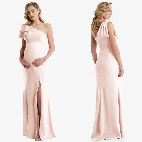 DESSY COLLECTION One Shoulder Gown Maternity Size 10 Blush Pink Bow Formal Dress