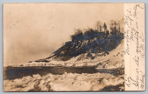 1906 RPPC Morton NY Winter Icy Lake Cliff Bluff Postcard Holley NY Real Photo