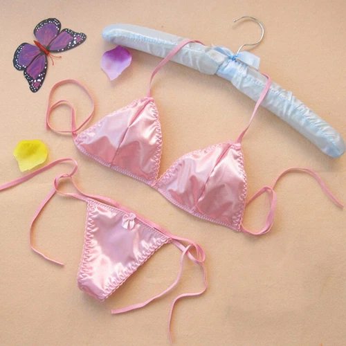 New Sexy Women Lace Up Hollow Bra Panties Garter Belt Perspective Bikini Three-P