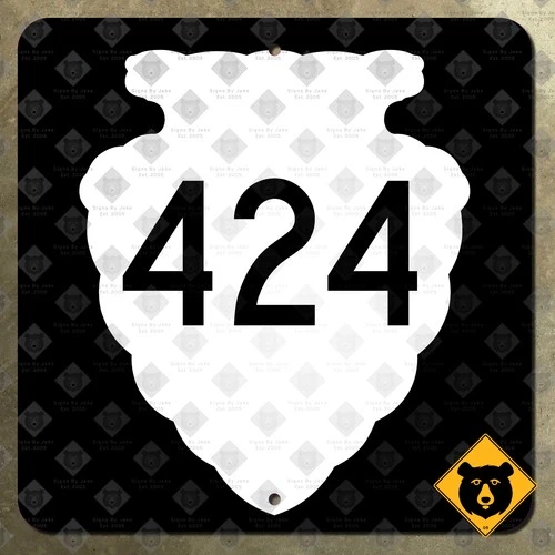 Montana secondary highway 424 road sign arrowhead Kalispell Whitefish 16x16