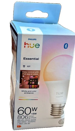 Philips Hue Essential Smart A60 LED Bulb, White and Colour Ambience, E27 Base