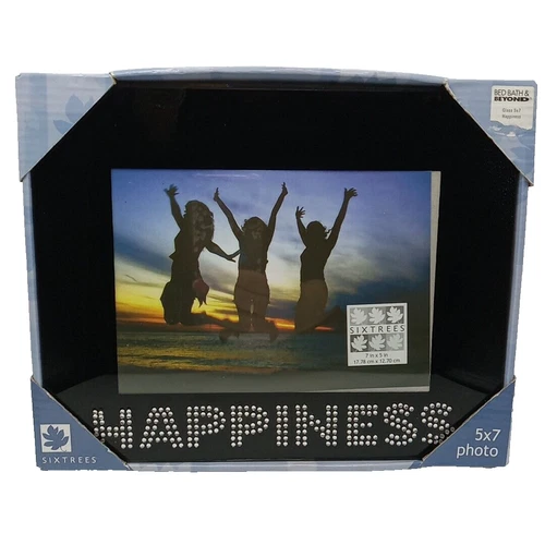 Sixtrees 5x7 Black Glass Frame Happiness Sentiment Rhinestone Happy Decor